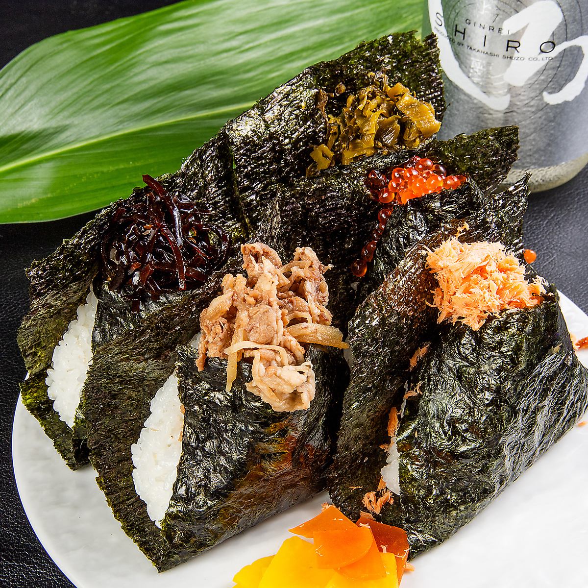 〈究極のおむすび◎〉お米厳選した純国産米、五島列島の塩、有明の厳選した海苔のみを使用。また、提供の仕方にもこだわり、食べる直前に海苔をまく”あとまきスタイル”で海苔の美味しさを最大限に引き出しております!20種の具材で毎日でもお楽しみいただけるのでリピーター続出中♪